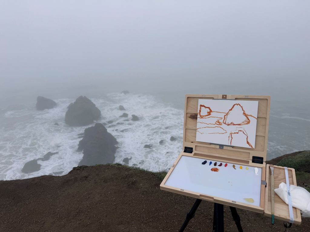 I walked out to the edge of the point and all I could make out were a few large rocks in the ocean. I decided to go ahead and paint that despite visibility being low. Here was the scene I decided to paint:
