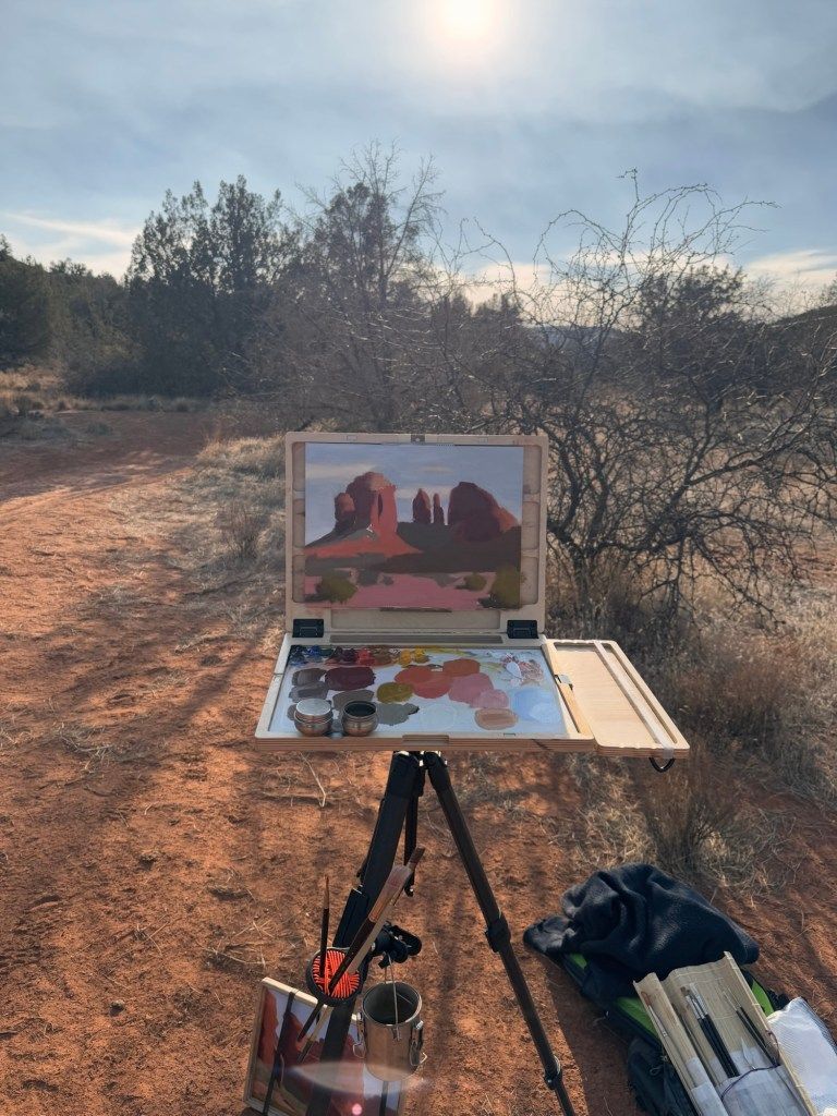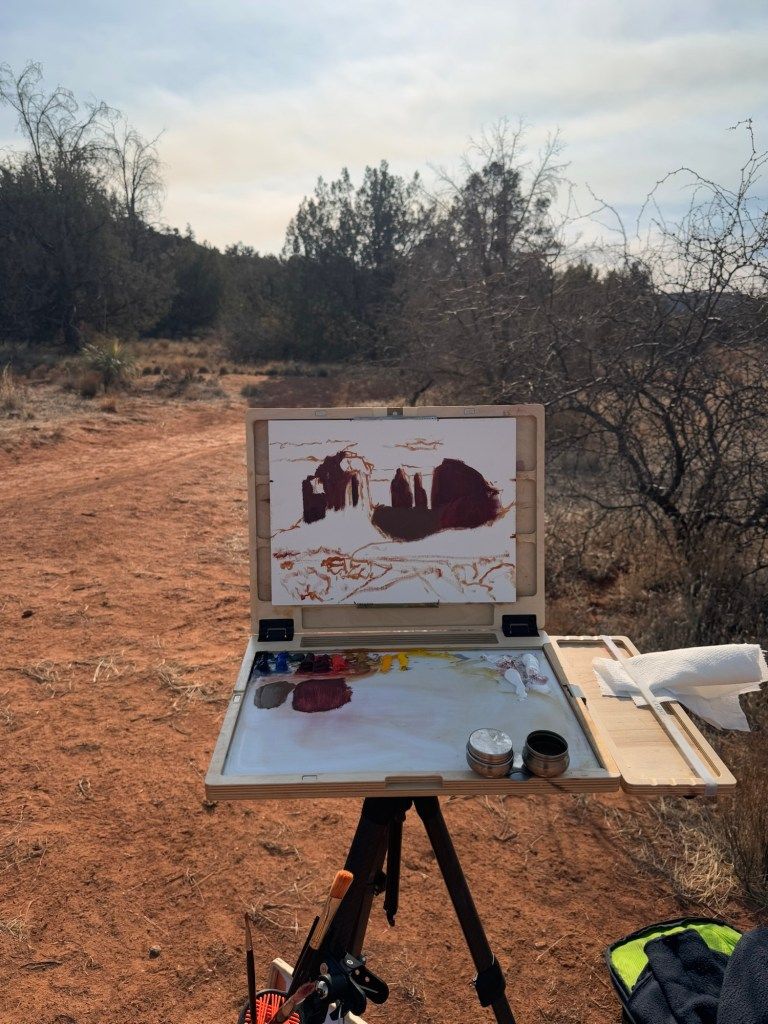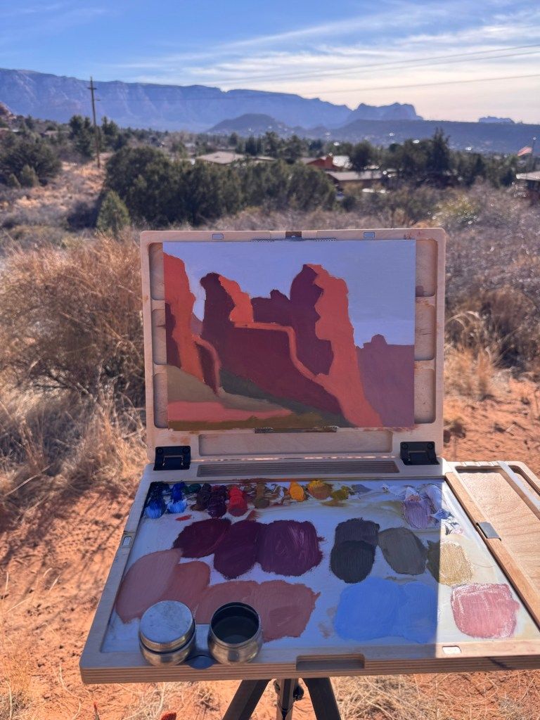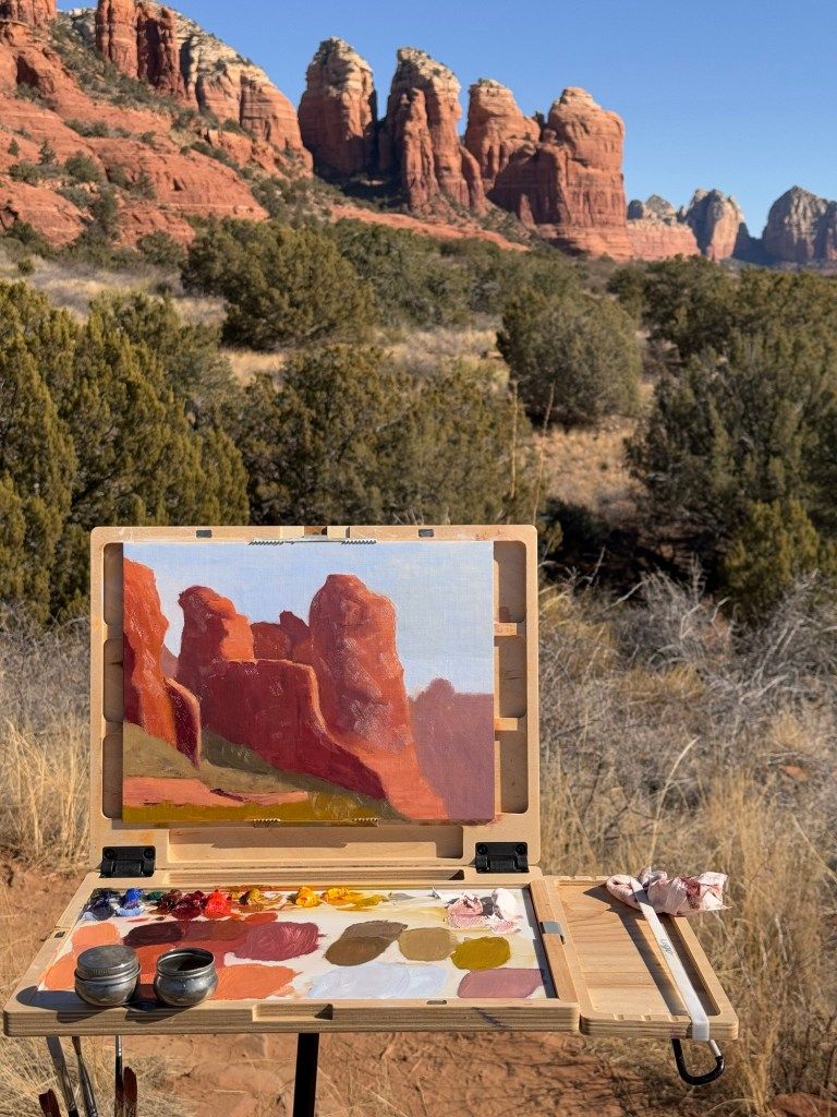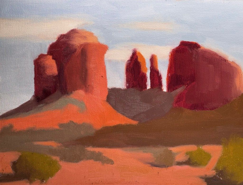 For day 13 of my painting month, I planned to make 2 paintings in Sedona, AZ. There are so many places to paint in Sedona that it’s almost overwhelming. In the end, I decided to paint Cathedral Rock and Coffeepot Rock.